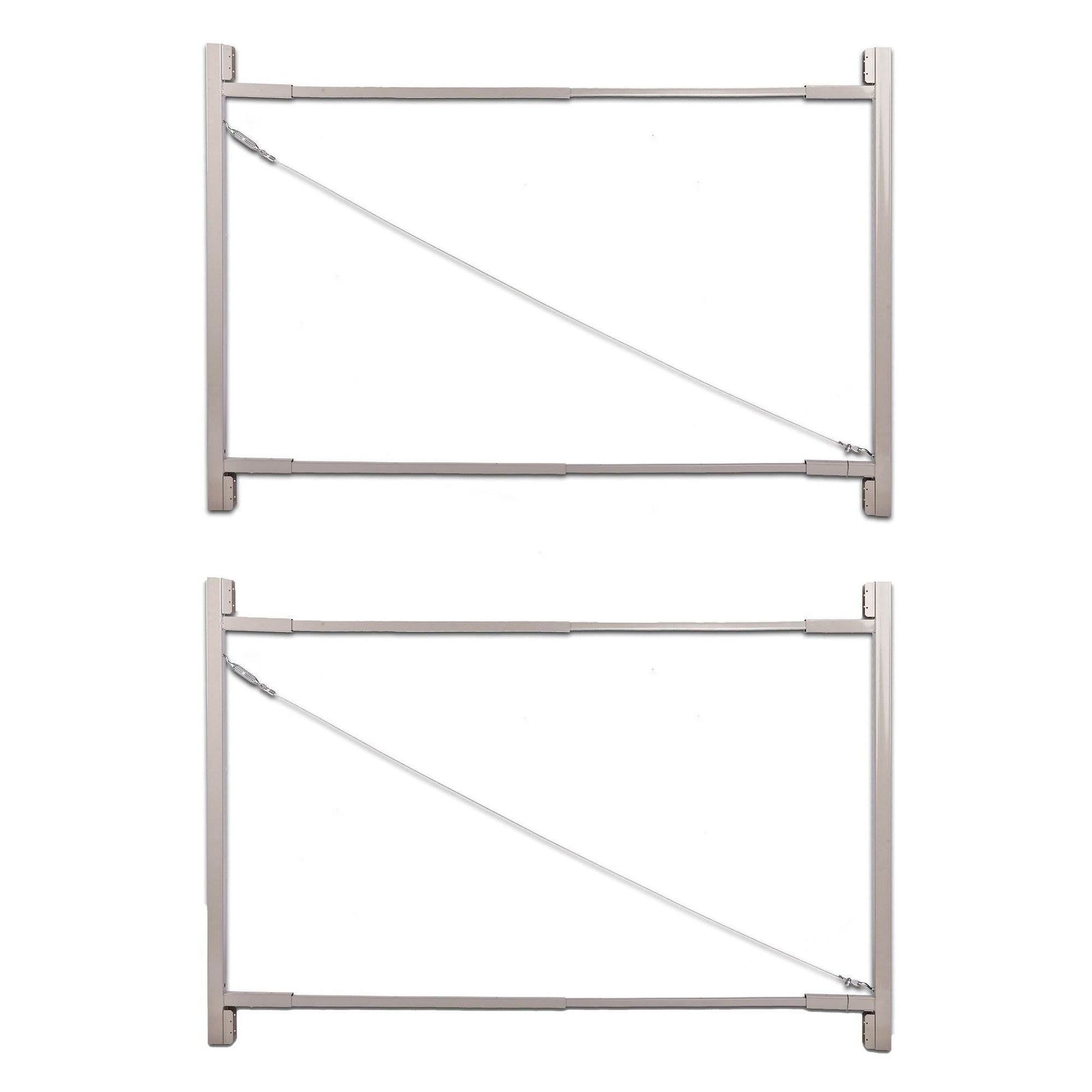 - Package includes: Adjustable steel frame, lockable 2-way gate latch, post and gate hinges, and patented truss cable system