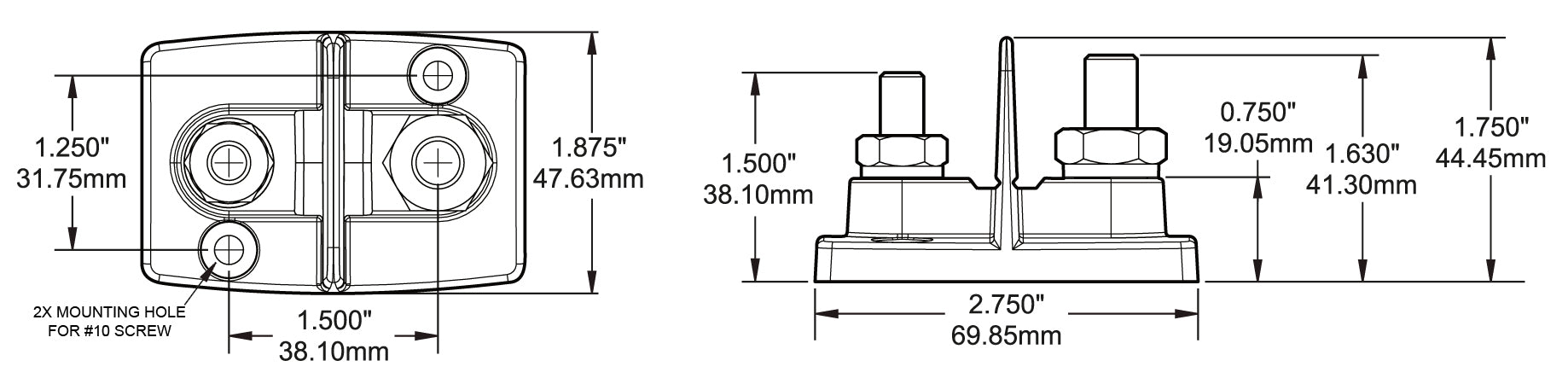 Blue Sea PowerPost Dual 1 x 5/16" and 1 x 3/8" Studs With Insulators