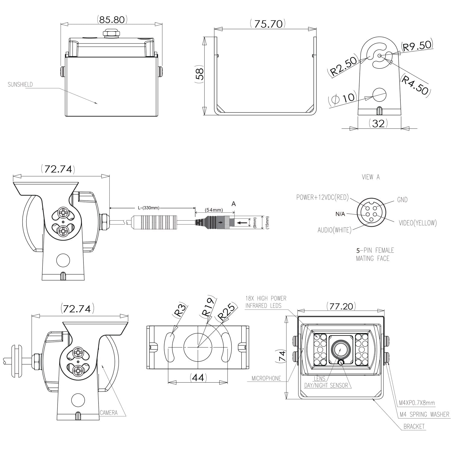 The adjustable mount and sun shield allow for flexible installation and optimal positioning. Customize the camera's angle and direction to suit your vehicle's design and your specific needs. The sun shield ensures clear visibility even in bright sunlight, reducing glare and improving overall image quality.