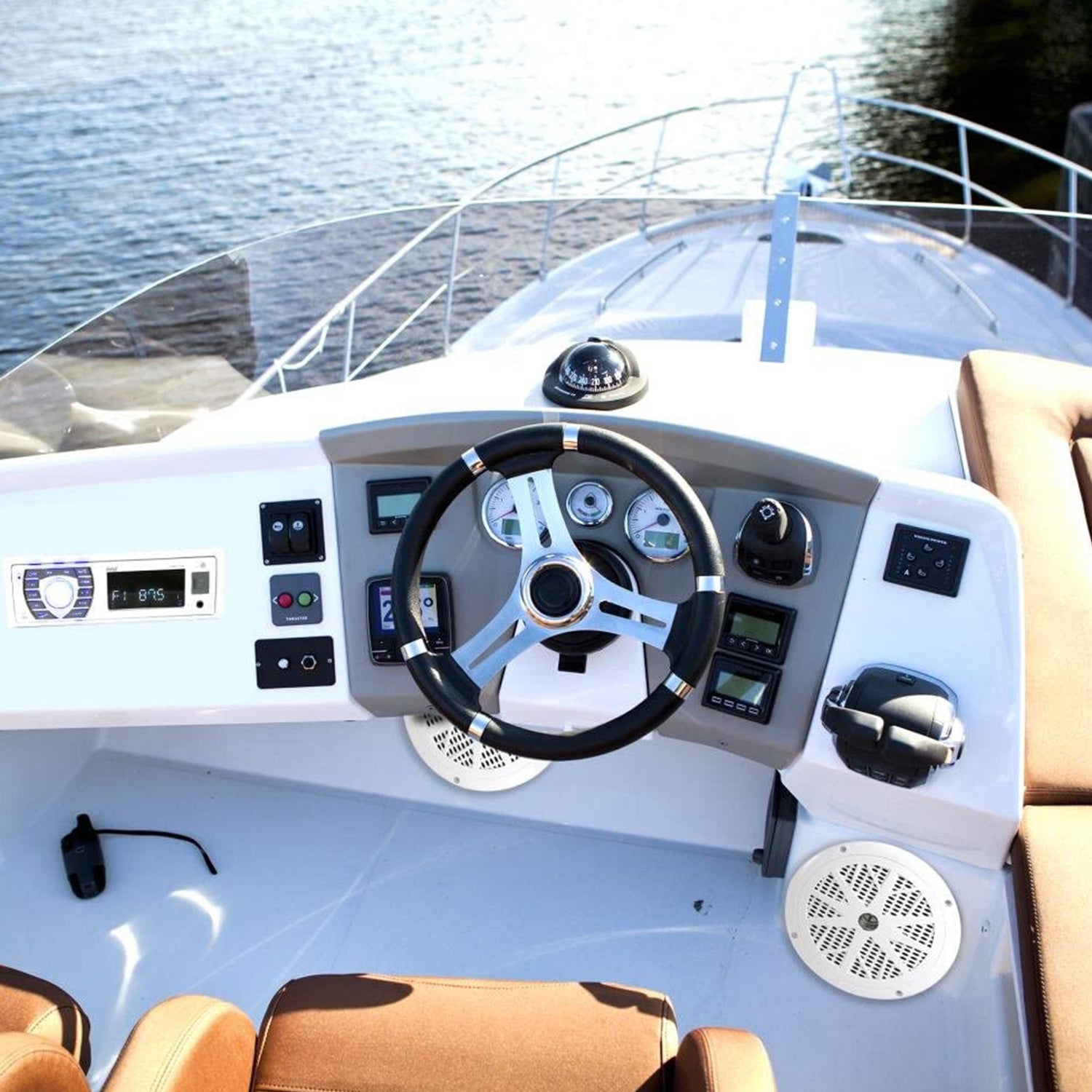 Transform your marine vehicle and watercraft sound system with these 2 Pyle PLMRKT36WT 5.25 Inch Bluetooth Marine Stereo Receiver and Speaker Kits.