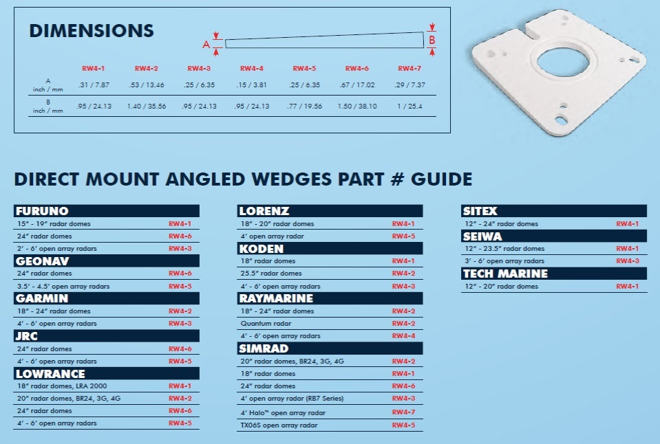 4 Deg. wedge for direct mount (fits raymarine, & Garmin 15-18")