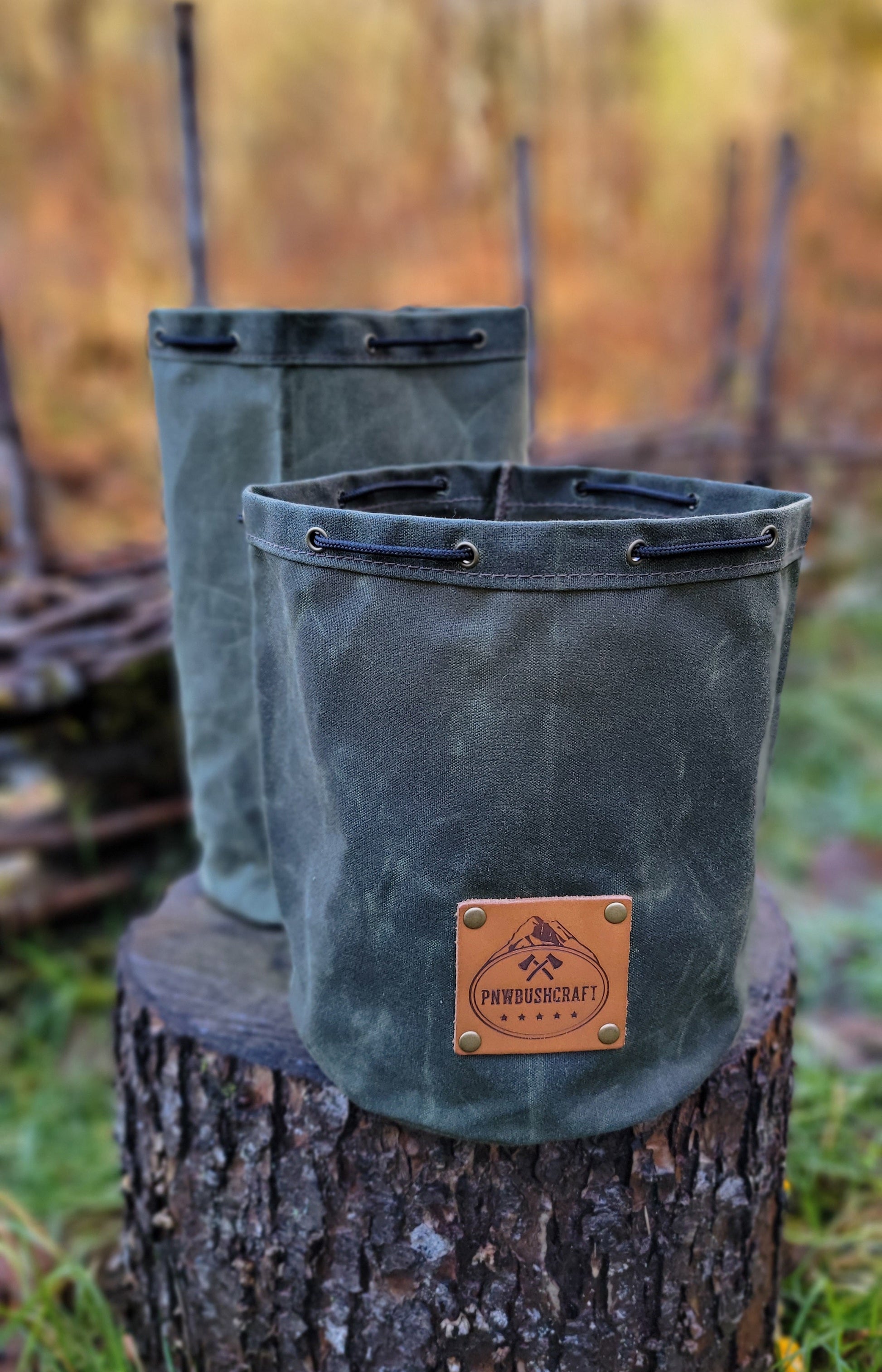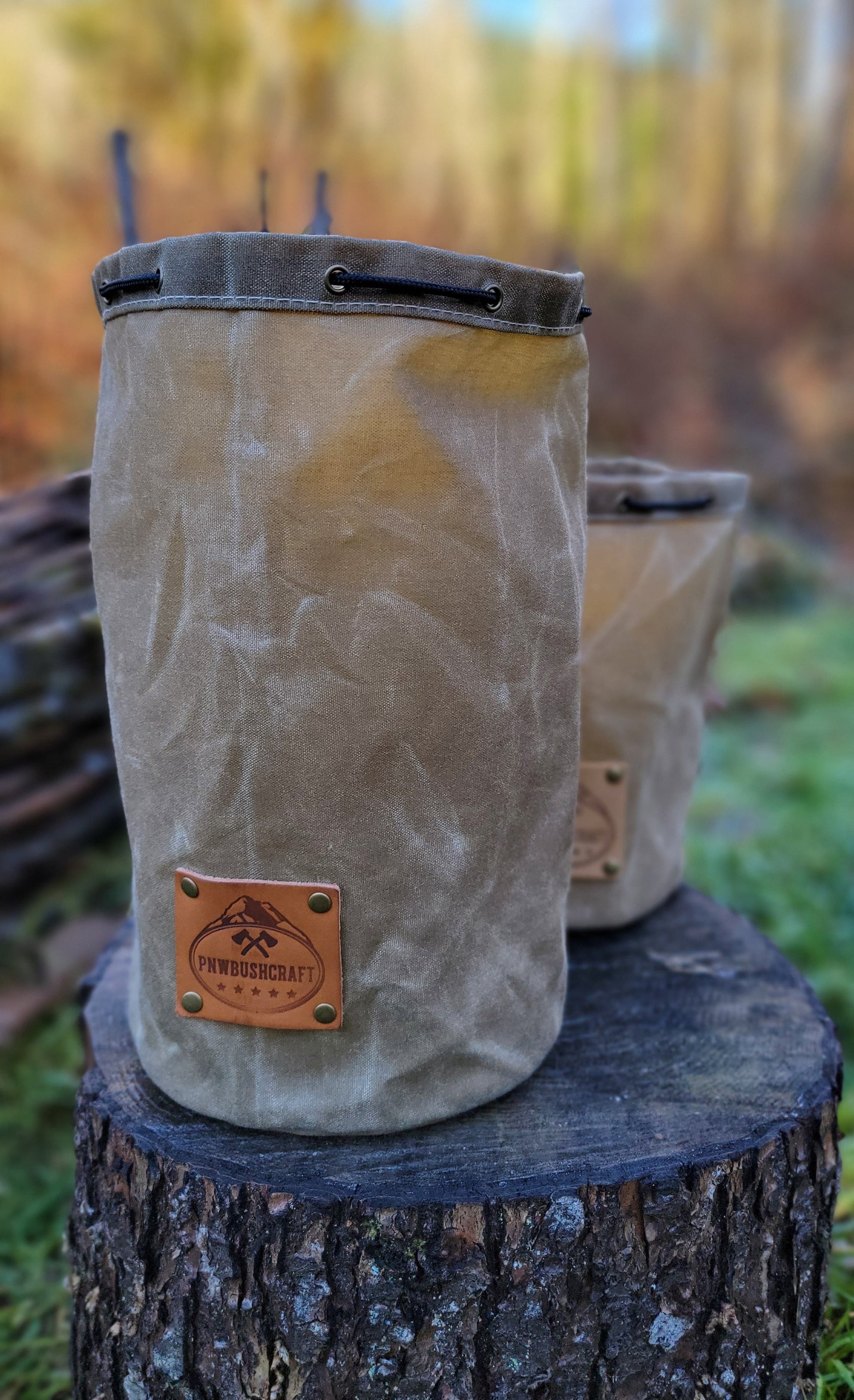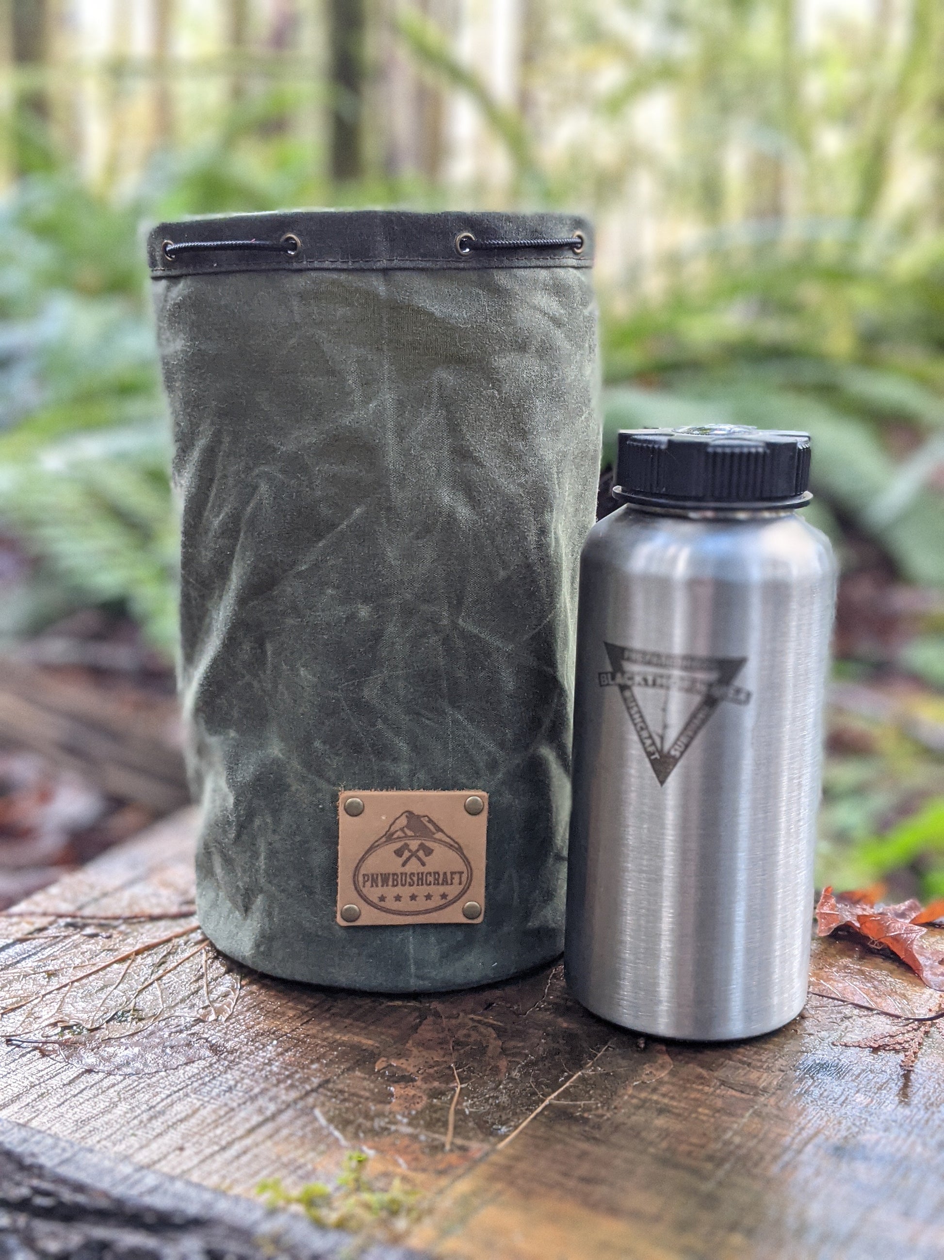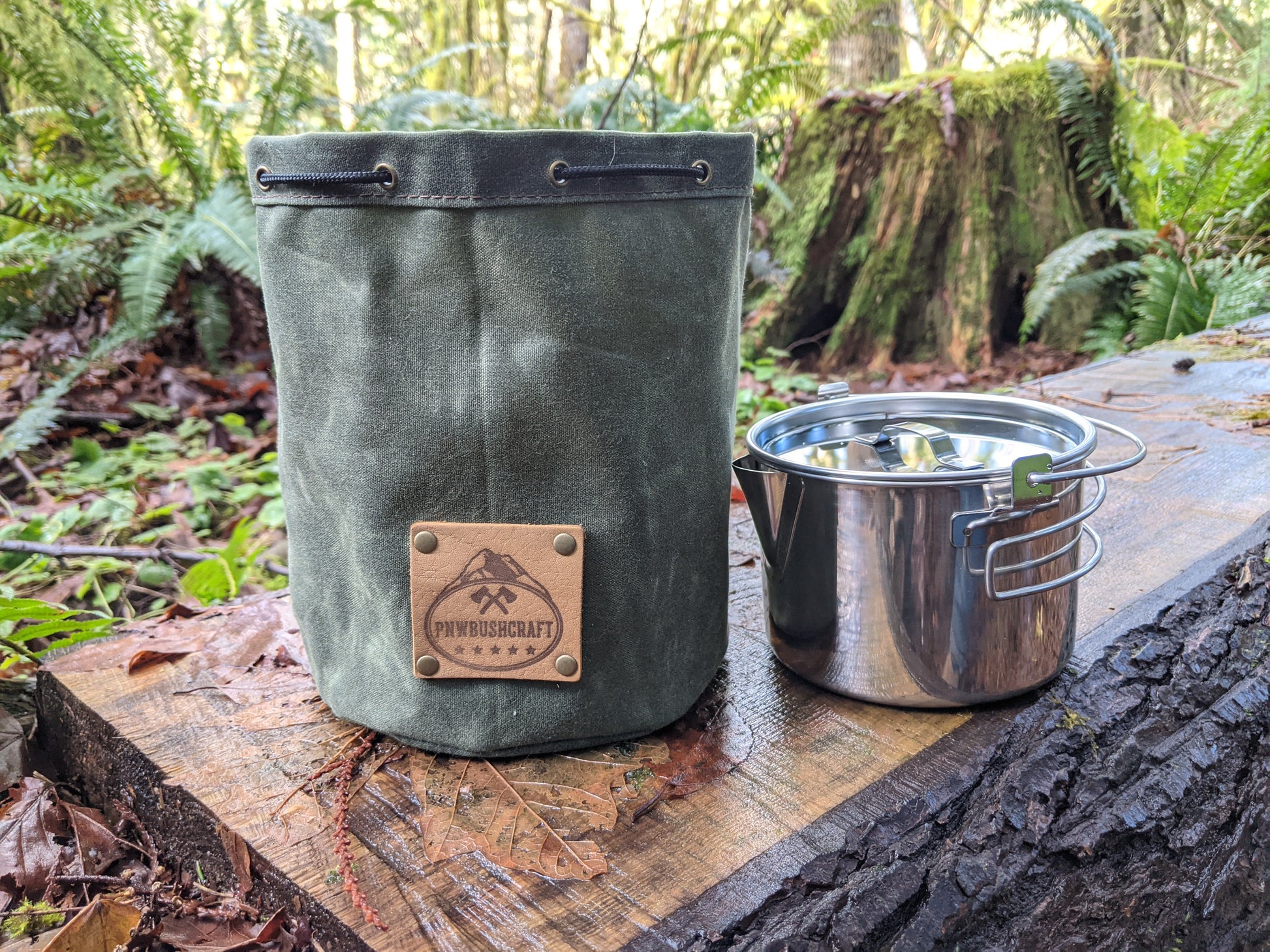 The bag is made of 10.1 oz waxed canvas which holds up great to the elements. This bag was designed to hold a cook set. It comes in a dark brown, olive green, field tan, and pulls shut with paracord and a toggle. This was created to be a traditional Bushcraft item but has so many uses. You can put so many different items in here. We use one for our cooking set so the rest of our gear doesn't get dirty. This is a great addition to any backpack or a gift for that outdoor enthusiast you know.